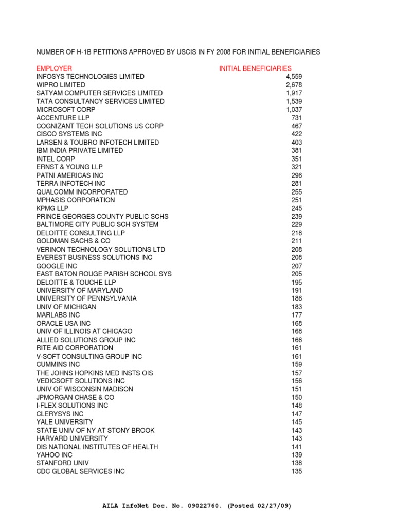 H1b 2008 Pdf Publicly Traded Companies Of The United States Companies